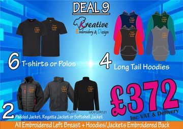 All embroidered left breast. Hoodies/Sweatshirt & Jacket embroidered backs too.